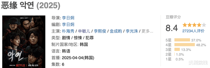 Netflix出品,一共仅有6集,目前豆瓣8.4分。